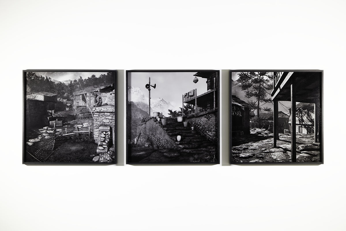 His photographs are composed of screen captures, often more than a hundred, stitched together to create a seamless and high resolution image of a world never meant to be seen with such clarity. By examining the virtual context through the language of photography, Berry begins establishing a vocabulary for finding meaning within our highly mediated world.